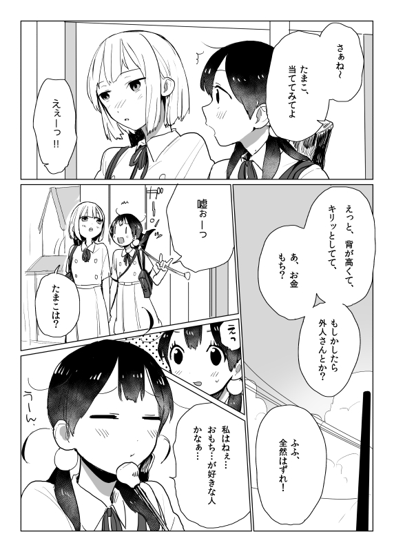 キャラソンを聞いた時に、みどりはたまこのことを本当に大切に思ってるんだなあとか、なんだか神聖な気持ちになったので、百合だとか恋愛感情だとかそういうのとはちょっとだけ違うんだと思って描きました。